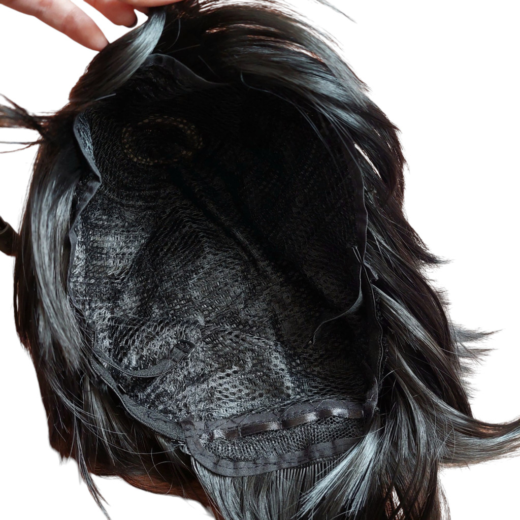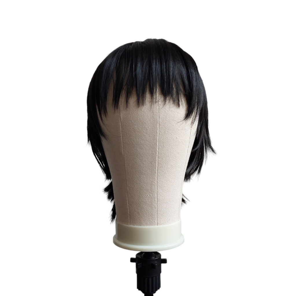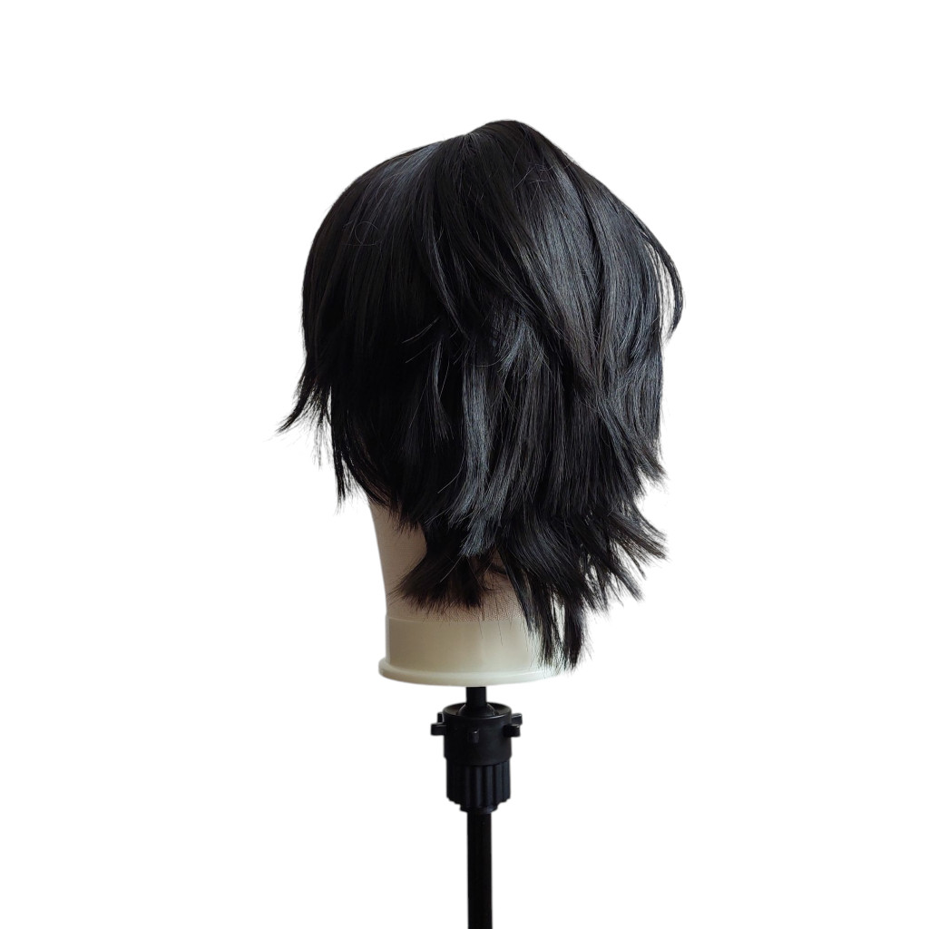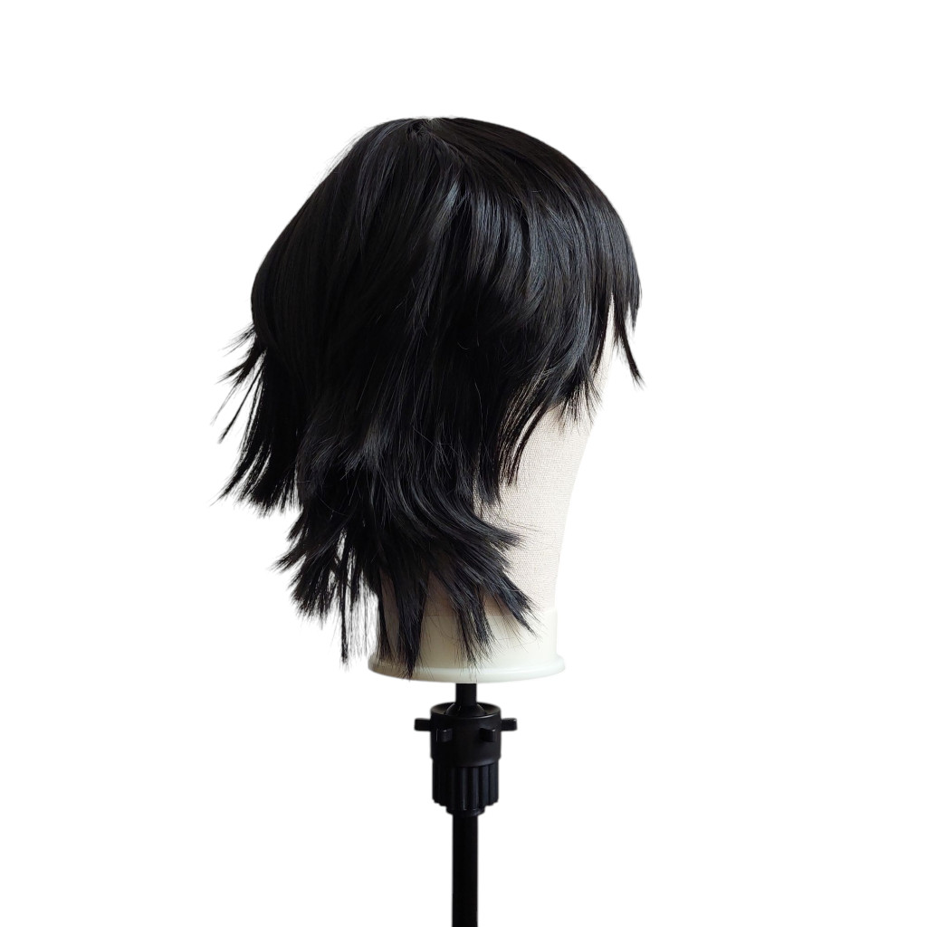 Rövid fekete paróka férfi karakterekhez. Szép, fényes szálai vannak, viszont a rosszabbik fajta csipkehálós sapkája van így hosszútávon nem lesz a legstrapabíróbb. Félig formázva érkezett így inkább csak stylingolni kell, hogy karakterhű legyen.