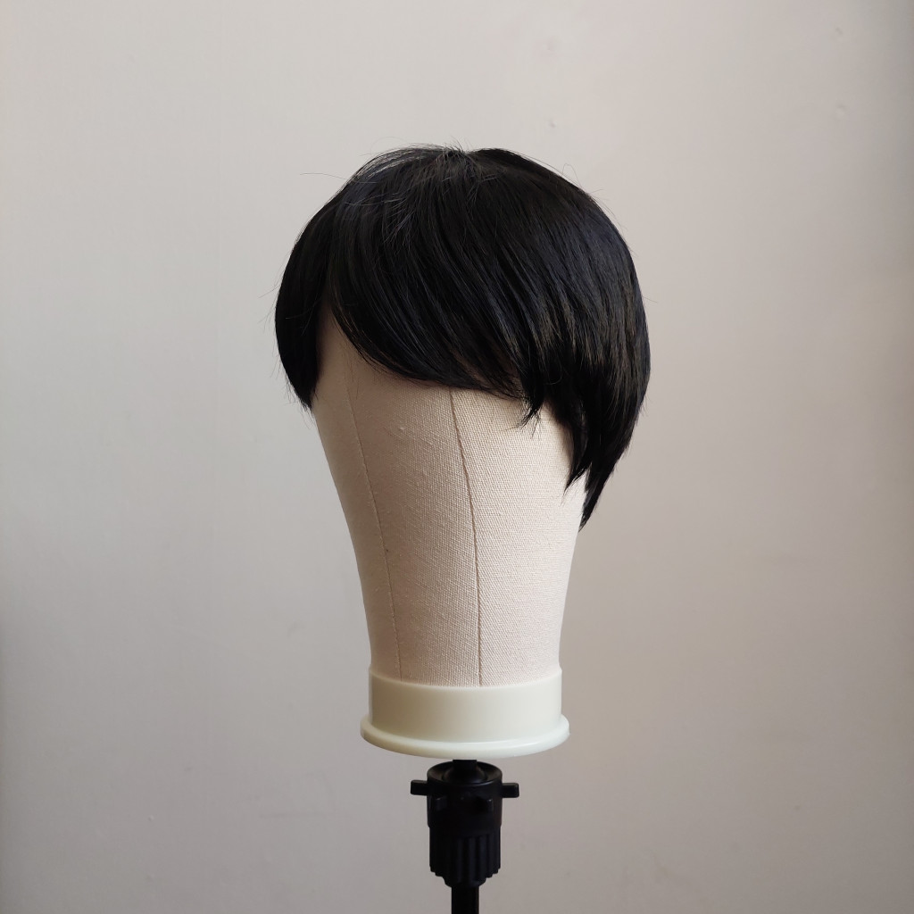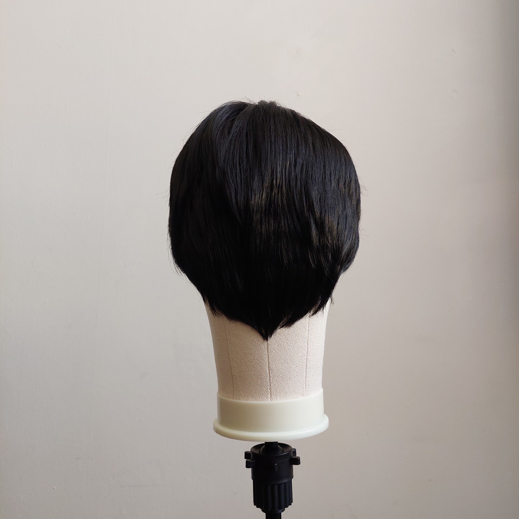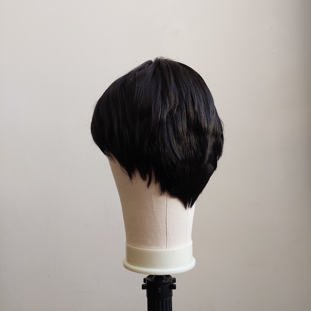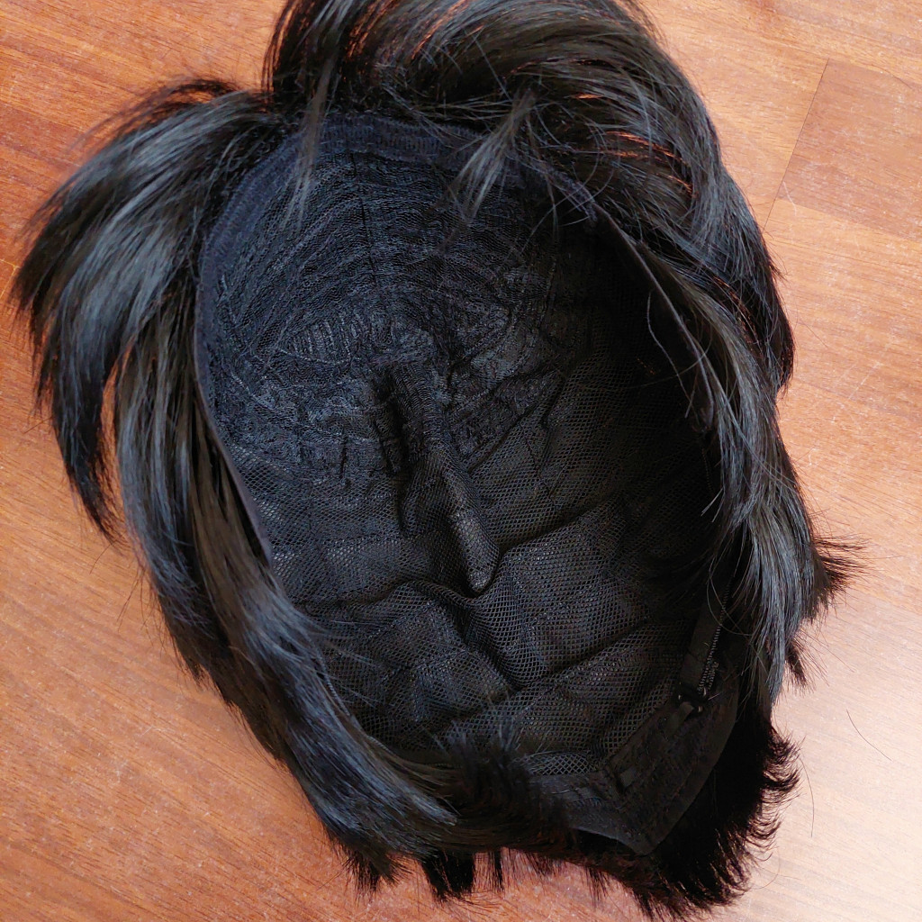 Rövid fényes fekete paróka általában férfi karakterekhez. A sapkája hálós ami miatt kicsit hajlamosabb a hullásra fésülés közben de alapvetően egész dús. Alakjában és szálában nagyon hasonló egy másik parókához amit ugyanezen a néven, csak "A" verzióként hirdetek mivel én más cikkszámmal rendeltem őket. Ha ez elfogy, akkor a másik is ugyanennyire megfelelhet egy-egy karakternek, annak kicsit rövidebb a frufruja.