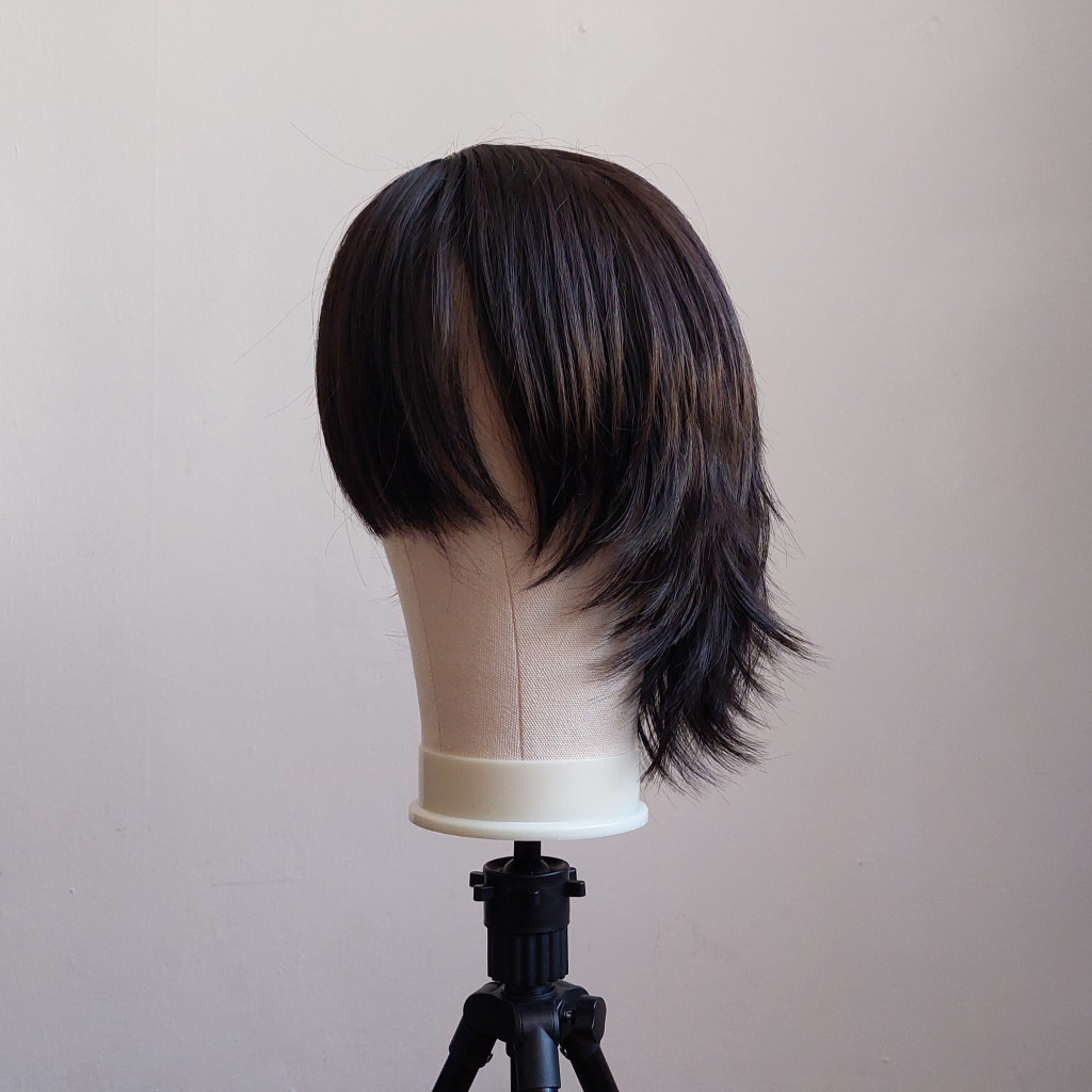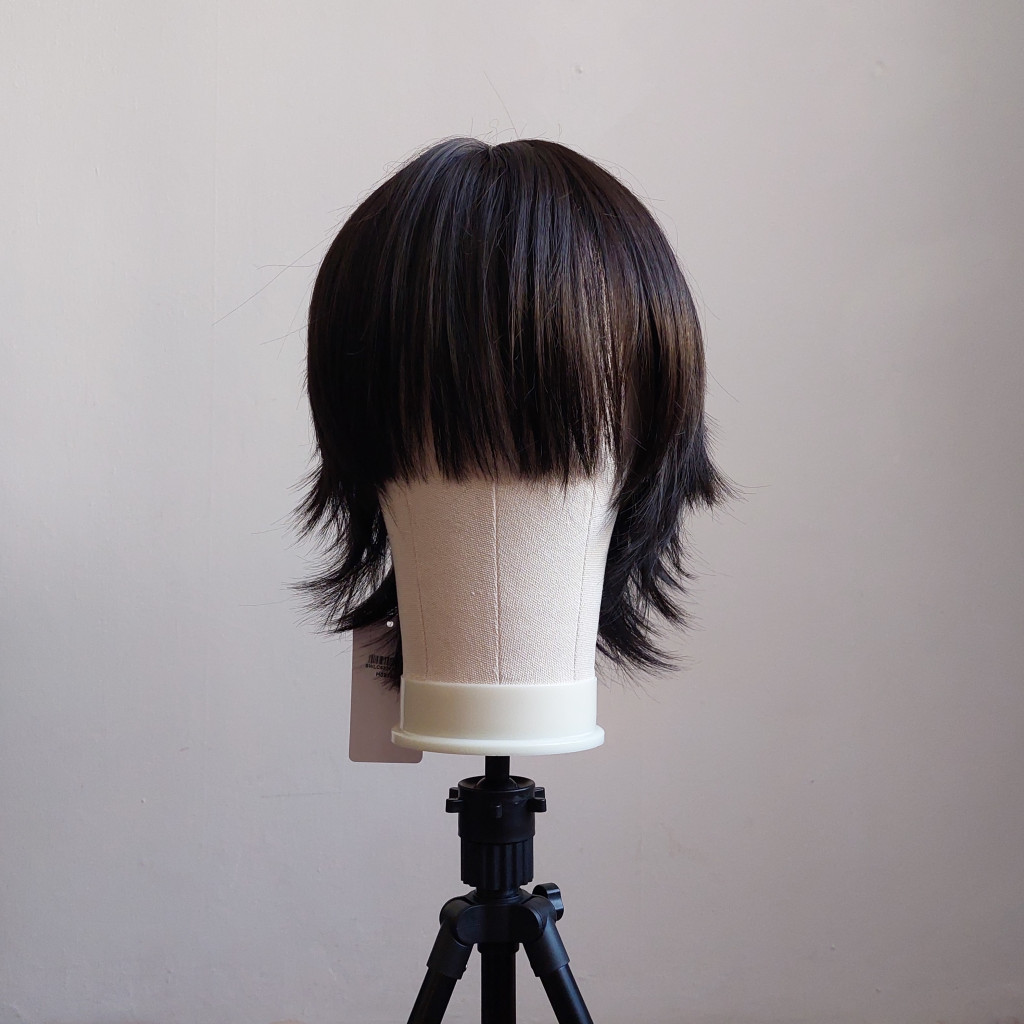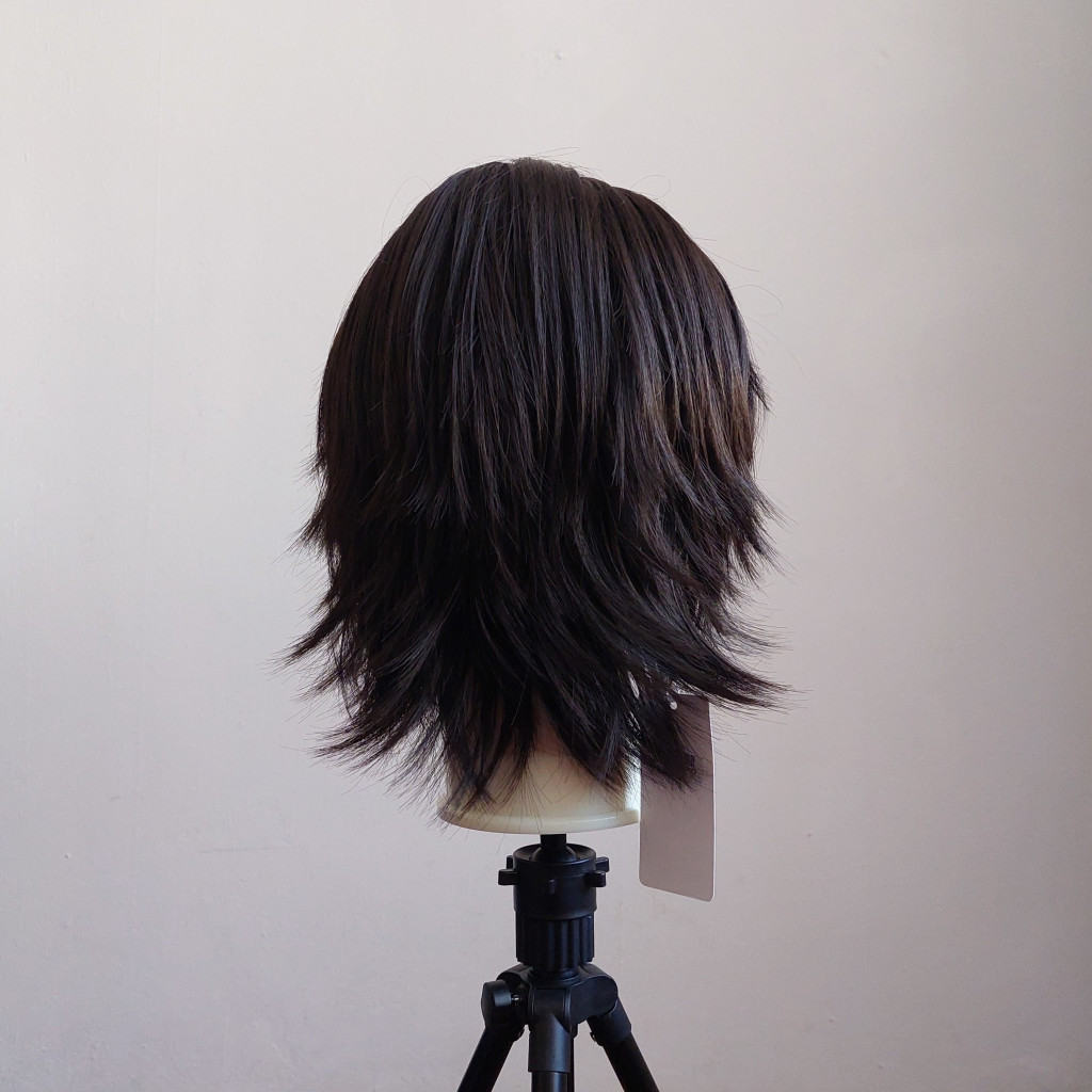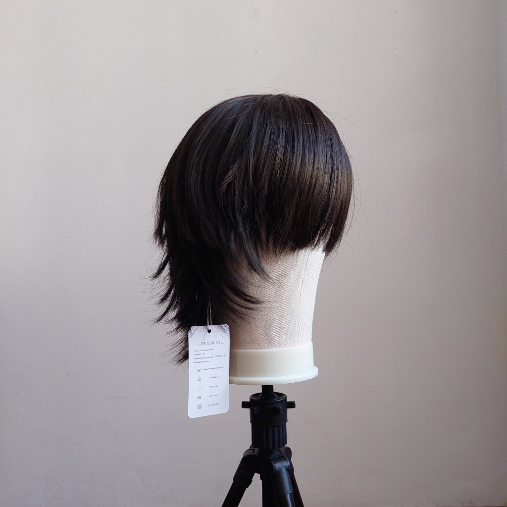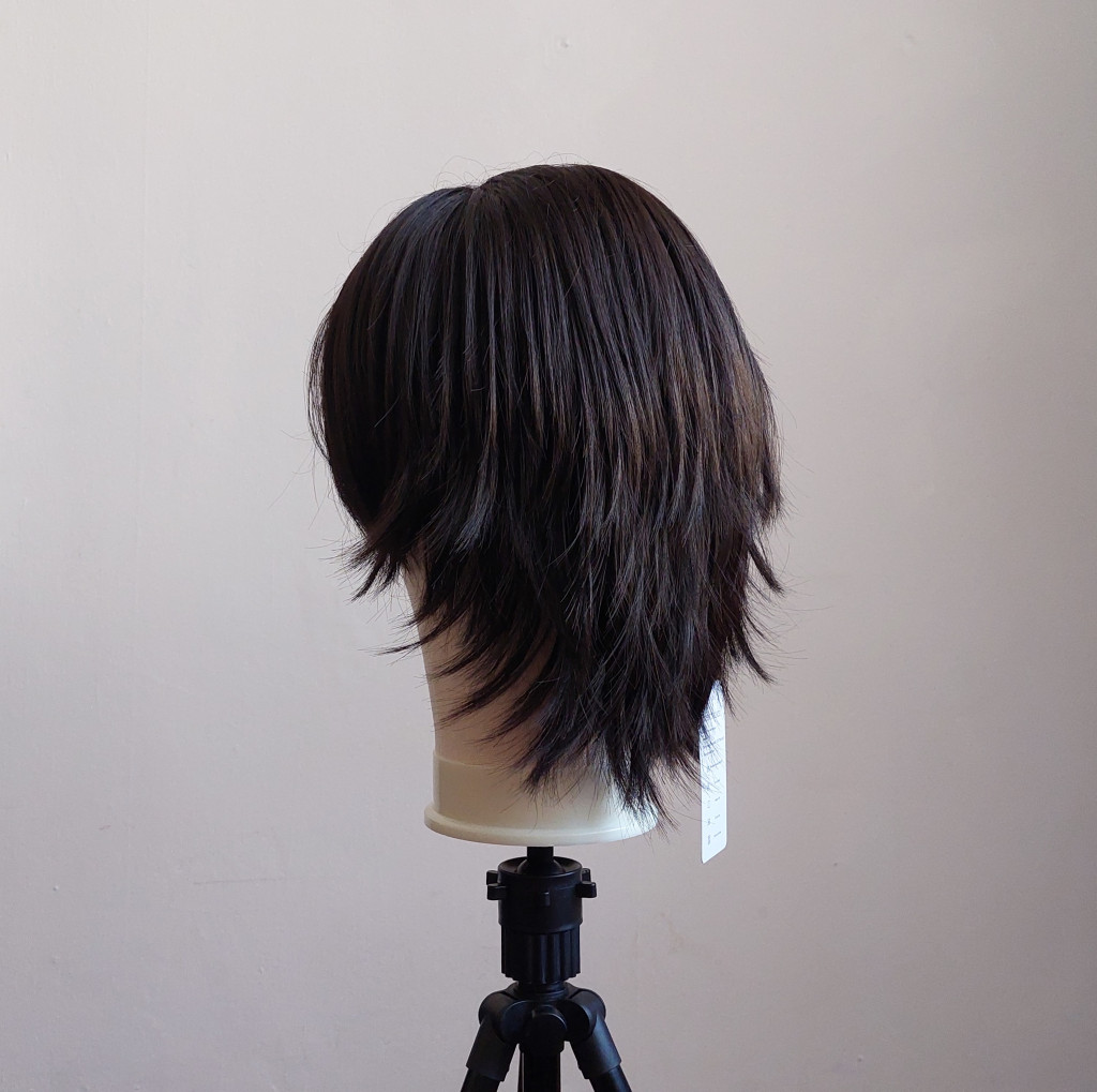 Nem túl fényes így természetes hatású fekete paróka. Az anyag mintha minimálisan kreppelt lenne amitől még dúsabbnak tűnik. Áll alá érő hossz. Használható például Go Go (Big Hero 6) vagy Chrollo Lucifer (Hunter x Hunter) karakterekhez minimális formázással.