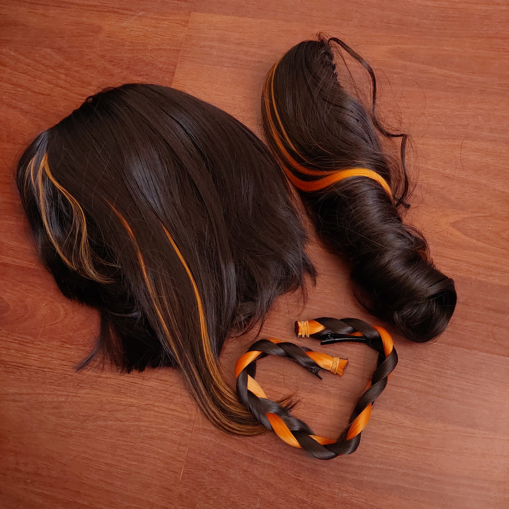 3 részből álló paróka: alap, copf, és a copf köré szánt fonat. A karakternek megfelelő színekkel és alakkal, így minimális formázást igényel. Jó minőségű, puha paróka, sokáig hű társad lehet:)