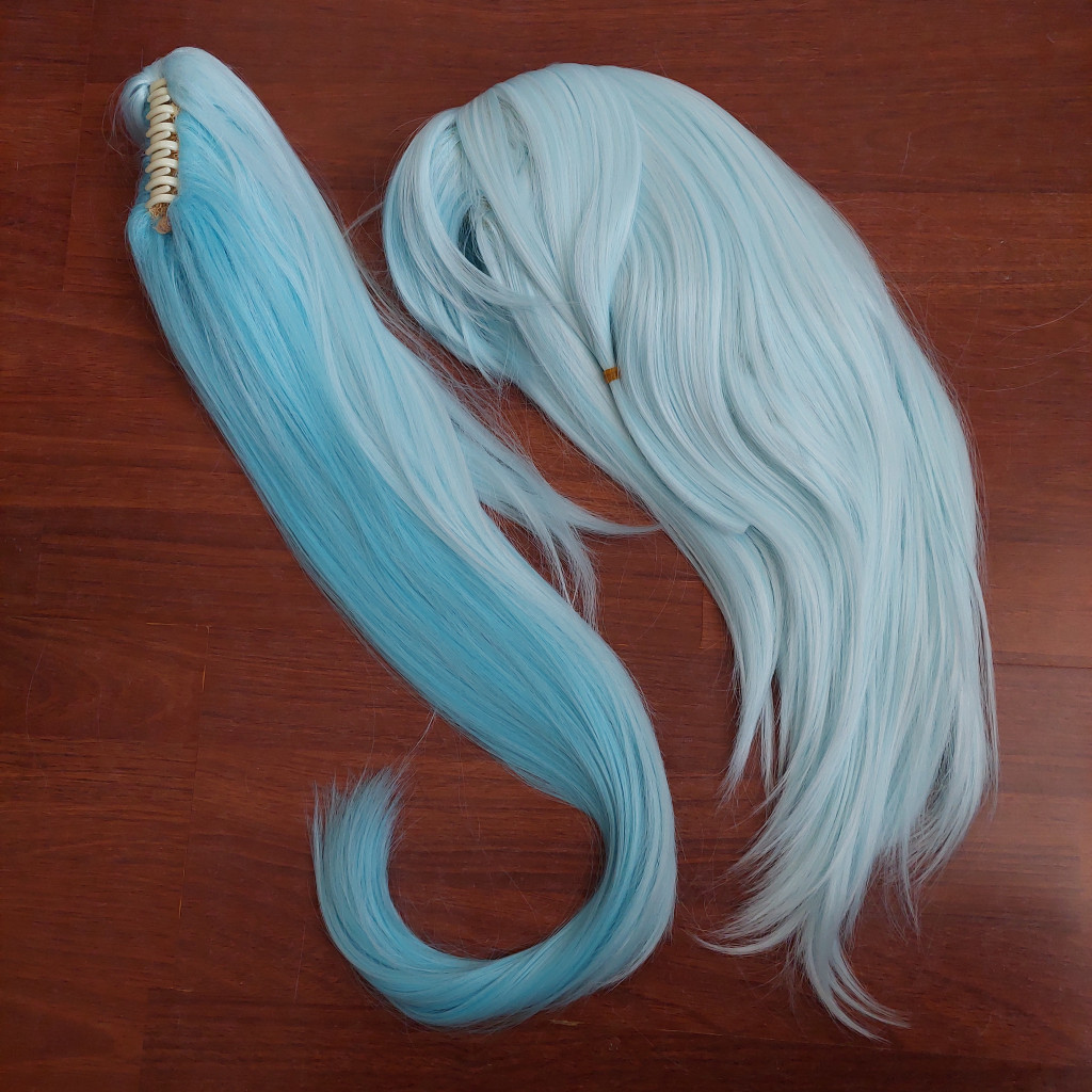A leértékelés oka: személyes megítélés alapján: Ayaka haja a játékban illetve official képeken inkább kékes-ezüstösebb hatású, a paróka világoskék árnyalata illik hozzá és fanartokon is jellemző de úgy gondolom, hogy akciós áron jobban felkelti az érdeklődést:)