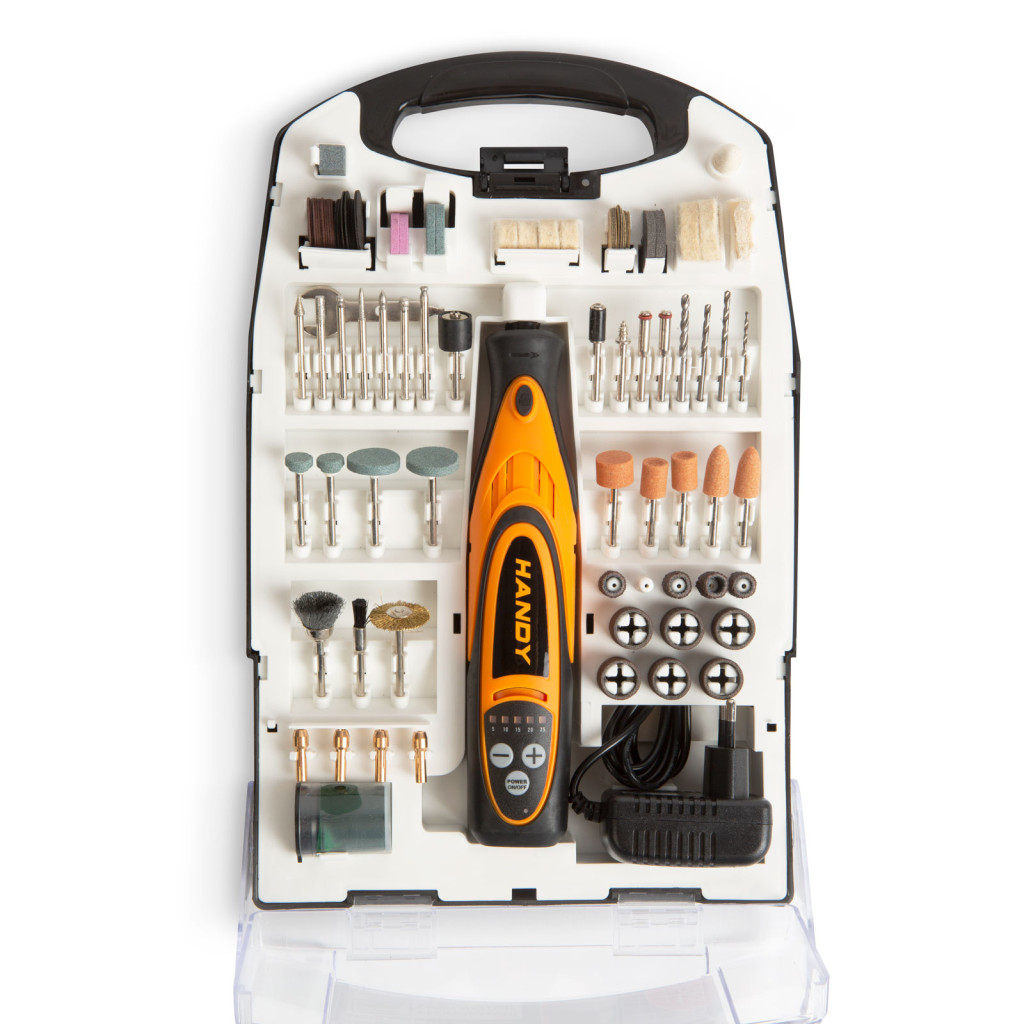 A HANDY DRILL mini csiszoló, gravírozó és fúrógép kifejezetten otthoni, manikűr/pedikűr és barkács célra lett kifejlesztve. A beépített akkumulátornak köszönhetően, kábelek nélkül, bárhol használhatja a szerszámot. Segítségével kisebb furatokat készíthet, csiszolhat, polírozhat, gravírozhat vagy akár vághat. Ideális cosplay készítéshez: EVA foam XPS, 3D modellek csiszolásához. Maximális furat befogadó képessége Ø3,2 mm. A különféle kiegészítők egyszerűen és gyorsan csatlakoztathatók. Kompakt, kis méretének és súlyának köszönhetően könnyen kezelhető a szerszám akár nehezen hozzáférhető helyeken is. Alkalmas lehet fa, fém, műanyag precíz megmunkálására is.