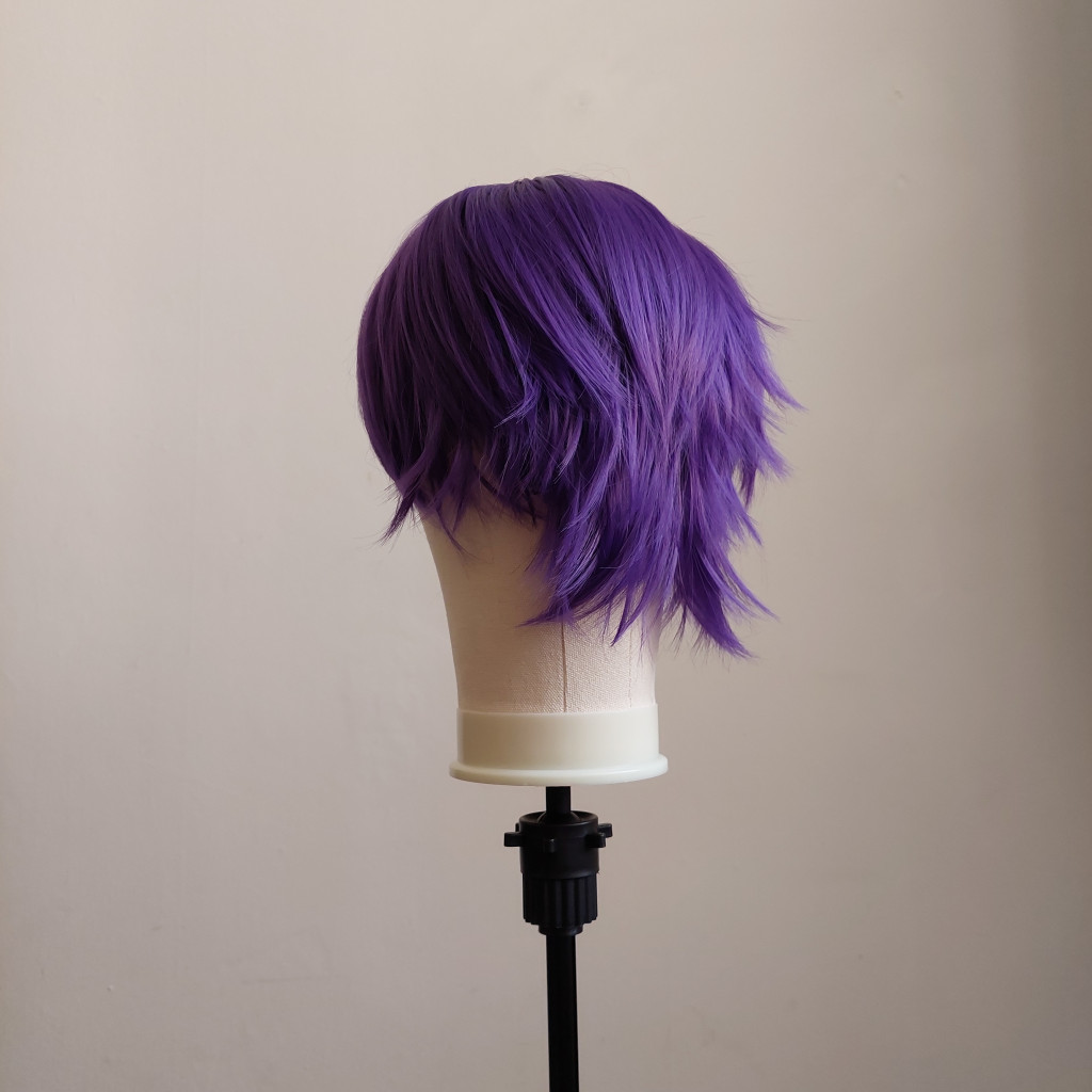 Élénk, teli, lila rövid paróka, minimális formázás és styling után tökéletes például Asahi Kobe (Happy Sugar Life) és Shuu Tsukiyama (Tokyo Ghoul) karakterekhez.