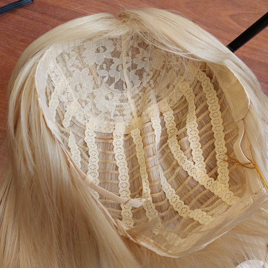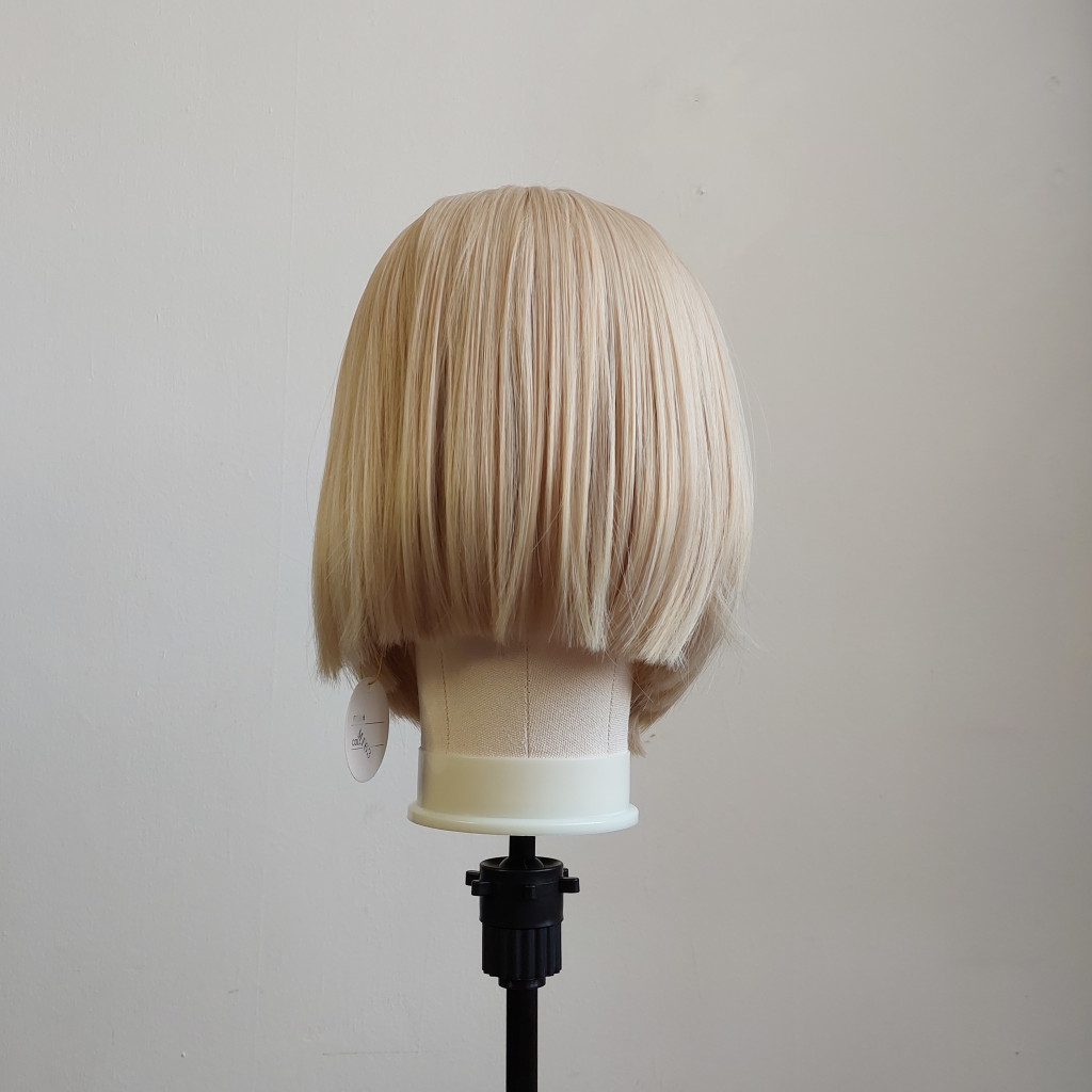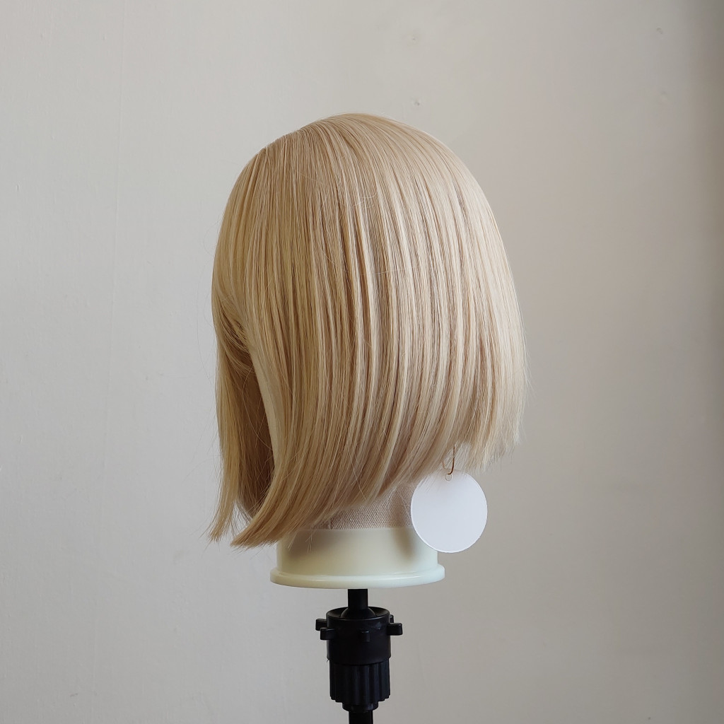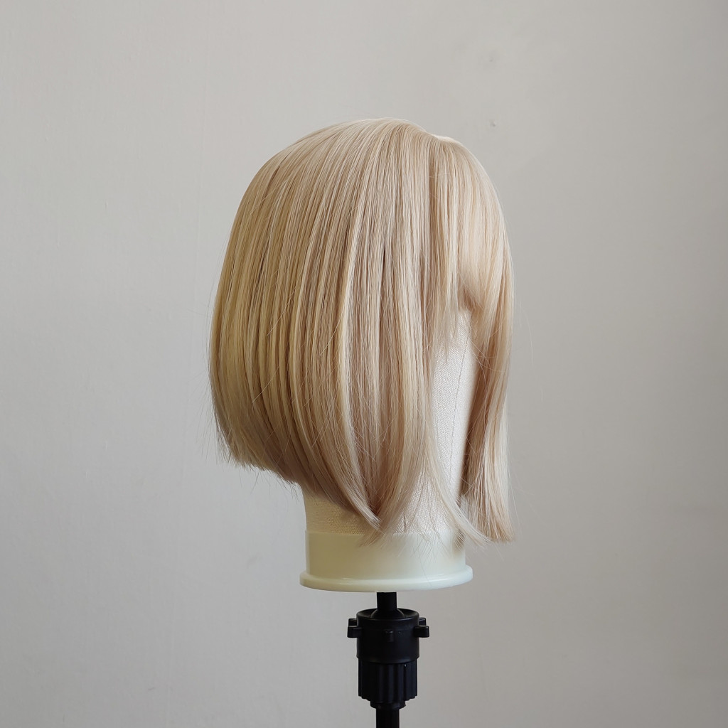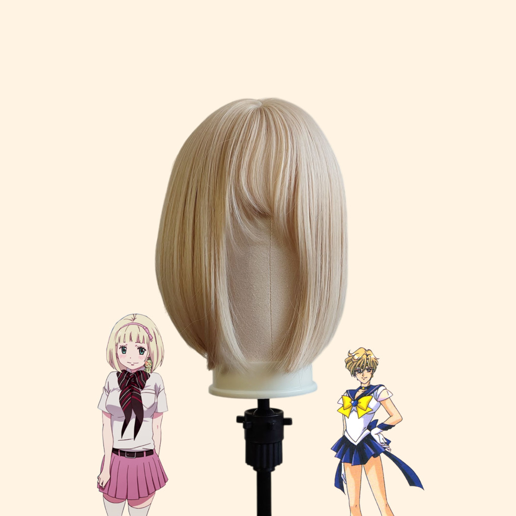 Nem túl fényes így természetes hatású szőke paróka, ~28cm hosszú. Jó lehet például Shiemi Moriyama (Blue Exorcist), vagy formázással Sailor Uranus-hoz.
